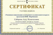 Наш педагог Сабирова Алсу Исмагилловна была участником вебинара по теме " Успешная социализация детей раннего и дошкольного возраста средствами ПМК "Воробушки" и получила сертификат участника! Поздравляем! Так держать!!!