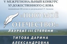 Поздравляем нашу воспитанницу Титову Дарину участницу V Межрегионального конкурса художественного слова " Пою моё Отечество" с победой!! Лауреат 3 степени.