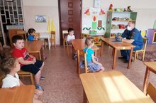 Сегодня с воспитанниками старшей группы старший инспектор отдела надзорной деятельности района Деманов С. провел беседу по пожарной безопасности. Целью беседы было обобщить и углубить представление детей о ПБ (знания детей об опасных ситуациях, окружающих их в доме, в лесу;знать какой вред приносят игры с огнем, уточнить знания о работе пожарных, правила поведения при пожаре)