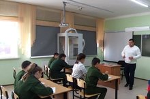 В рамках месячника безопасности состоялась встреча с сотрудниками пожарно-спасательной службы. Кадетам рассказали о службе МЧС, показали некоторые принципы работы спасательного дела. Ребята сами смогли попробовать себя в роли спасателя.