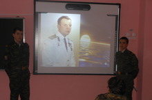 12 апреля на утренней линейке директор школы поздравил кадет с Днем космонавтики.