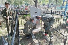 Наши кадеты регулярно убираются на могиле Карпова Павла Алексеевича. Недавно мы привели в порядок могилу ветерана ВОВ Крайнова Гордея Дмитриевича.