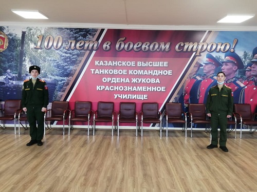 Опубликовано: 18.02.202118.02.2021 состоялся День открытых дверей в Казанском высшем танковом командном ордена Жукова Краснознаменном училище. Данное мероприятие посетили наши кадеты: девятиклассники Шарафетдинов Булат и Панфилов Андрей.