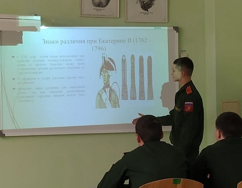 Опубликовано: 14.02.2022В нашей школе для учащихся 10 класса проведён классный час на тему : "Человек в погонах-кто он?" Кадеты представили презентацию по истории погон, составили психологический портрет военнослужащего и рассказали о их мужестве, бессмертных подвигах героев России: Романа Филиппова, Александра Прохоренко, Сергея Солнечникова, Марата Ахметшина, Алексея Козина, Игоря Чиликанова. В конце учащиеся ответили на вопрос, поставленный в теме классного часа. Человек в погонах-это патриот и защитник своей Родины, стоящий на страже её интересов. Погоны не просто знаки различия, а "чести знак, возложенный на плечи", как это образно описывал русский поэт А. Миропольский, в них отражается военная слава Отечества, подвиги защитников Отечества и своего народа.