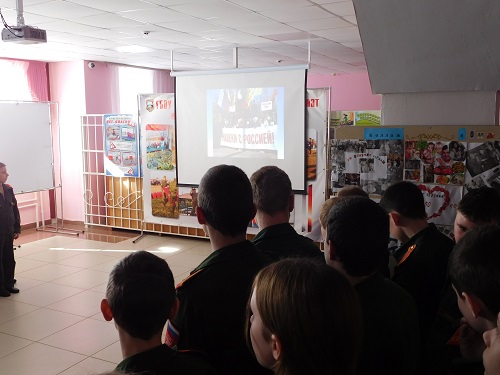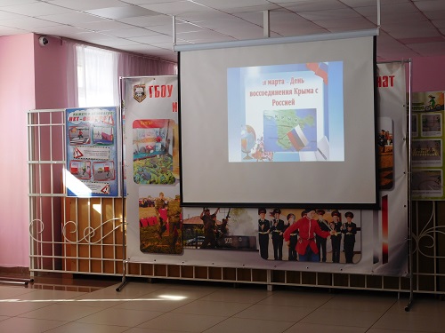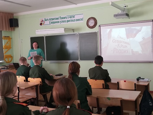 Опубликовано: 18.03.2022Историческому событию -дню Воссоединения Крыма и России были посвящены военно-спортивная игра "Растим патриотами" где кадеты продемонстрировали навыки военно- прикладной подготовки. Состоялись тематические классные часы "Крымская Весна" Кадеты каждого приняли участие в видео-экскурсии "Крым 2014-2022"