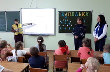Сегодня в лагере сотрудники ОГИБДД проводят викторины, соревнования между отрядами. В итоге всем вручили подарки – световозвращающие брелки.
