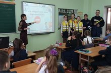 Руководитель кружка ЮИД Дербенева Г.Г. традиционно приглашает начальника и инспектора ОГИБДД, которые напоминают детям о правилах безопасности на дорогах.