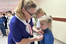 После клятвы школьникам вручили нагрудные значки и браслеты.