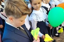 В День знаний, на торжественной линейке заложили новую традицию «Самолётик будущего», которая будет знаменовать начало учебного года. 11-классники написали на самолётиках напутственные слова для первоклассников, после чего подарили их ребятам вместе с шариками.