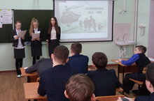 В 7 б классе прошел классный час «Афганистан – ты наша боль», посвященный этому событию. Ведущие Тюленева Анна и Зайцева Арина познакомили учащихся класса с Афганской войной, рассказали о молодых парнях, которые тогда погибли, прозвучали стихотворения об их подвигах в исполнении Абрамова Аркадия, Золина Егора, Федорова Максима, Хайруллиной Алины, Кривошеевой Дарьи. В конце классного часа вспомнили ребят из нашего района, не вернувшихся с поля боя.