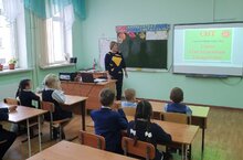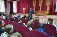 В рамках месячника безопасности прошла беседа учащихся с инспектором МЧС Колесовой А.А. и Шалашовым А.А.