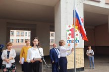 Шольная линейка, посвящёная Дню знаний, началась с церемонии поднятия флагов России и Татарстана.