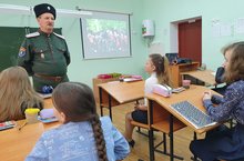 Беседа учащихся 5а, 5б классов с Мыновым В.А. представителем городского казачьего общества «Спасская станица», посвященная празднику «День Победы».