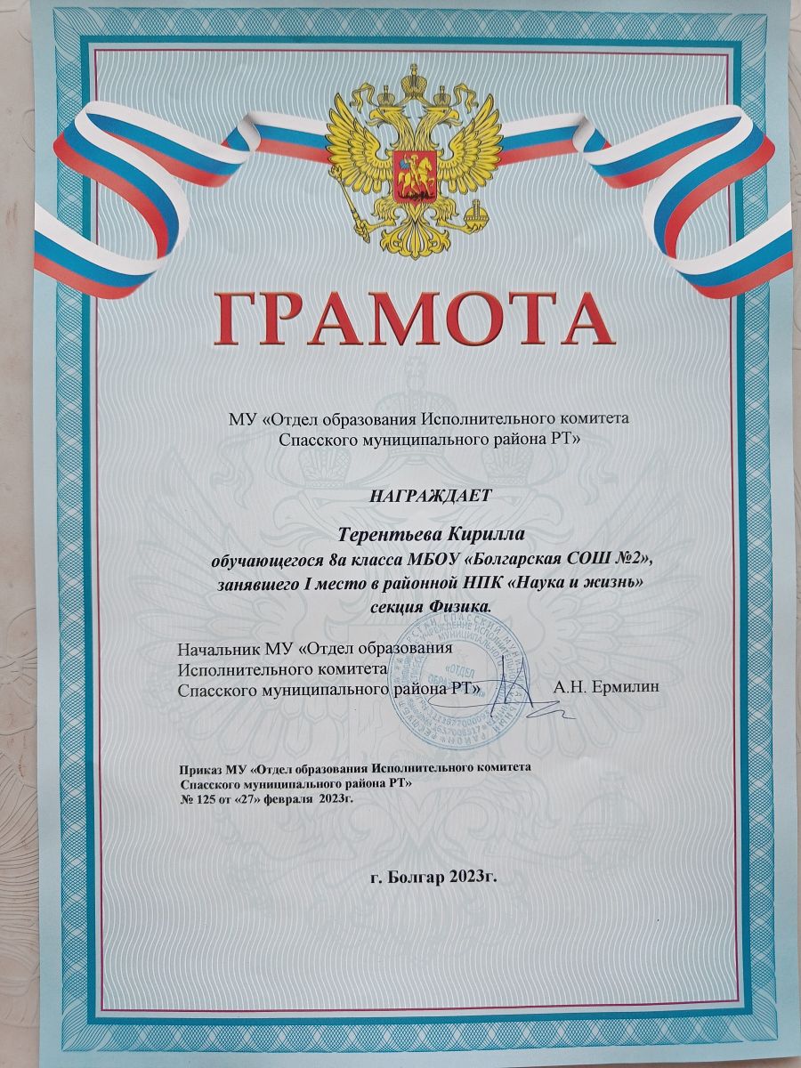 - Грамота Терентьева Кирилла