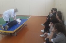 В 8 классе было проведено практическое занятие «Правила спасения людей на водоемах и оказании первой медицинской помощи утопающему». Воспитанники были познакомлены с правилами действий при спасении людей на водоёмах в летний, осенне-зимний и весенний периоды. Какие подручные средства можно использовать для спасения людей терпящих бедствие на водоёмах. Медицинский работник Инна Викторовна показала алгоритм оказания первой помощи при утоплении.