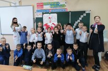 В этот день, мы вместе с обучающимися 1 -2 классов, решили приготовить Деду Морозу праздничный сюрприз – подарить портрет-апликацию , которые дети сделали своими руками.