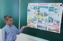 Рассматривая плакат, кратко познакомились с биографией: П.Я. Гурьянова, П.А. Карпова, П.Т. Лихачева. О том где проходили бои. Об их наградах , в честь кого названа школа№2 и улица Лихачева.