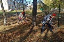 Уборка школьного двора идет полным ходом