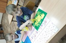 В 1 классе был проведен мастер-класс с элементами арт - терапии «Волшебные краски», направленный на развитие у детей воображения, оригинальности мышления, снятия эмоционального напряжения. В ходе мастер-класса, который проходил в спокойной доброжелательной атмосфере под красивую негромкую музыку, дети учились делать необыкновенные краски из муки, воды, клея, масла и гуаши. Каждый этап воспитатель сопровождал рассказом – легендой о значении воды, соли, муки (хлеба), как символах жизни человека. После приготовления всех необходимых ингредиентов, ребята приступили к творческой части: на цветных листах картона рисовали каждый свою волшебную картину без помощи кисточек, руками. После окончания этого увлекательного процесса сделали мини-выставку готовых работ, а затем дети активно делились своими впечатлениями. Занятие вызвало у детей много положительных эмоций, и радость общения в кругу друзей.