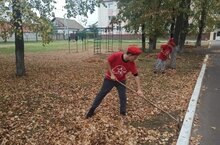 В нашей школе проводится акция "Мы чистим мир". Юнармейцы 6 класса приняли активное участие в уборке школьной территории.