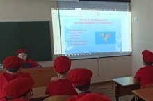 В рамках реализации духовно-нравственного направления с юнармейцами 8 класса проведён классный час "Чтобы людям радость дарить, нужно добрым и вежливым быть" Его целью было помочь детям усвоить основные этические требования в поведении и в общении с людьми, овладеть навыками культурного поведения. Ребята просмотрели и обсудили фильм из киножурнала "Ералаш".