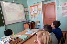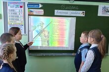На уроке математике Светлана Николаевна познакомила с биографией ученого, на доске начертила параллельные прямые, учащиеся сосчитали сколько лет прожил Лобачевский. На уроке русского языка учащиеся под диктовку записали предложения о Лобачевском. Беседа сопровождалась презентацией. -