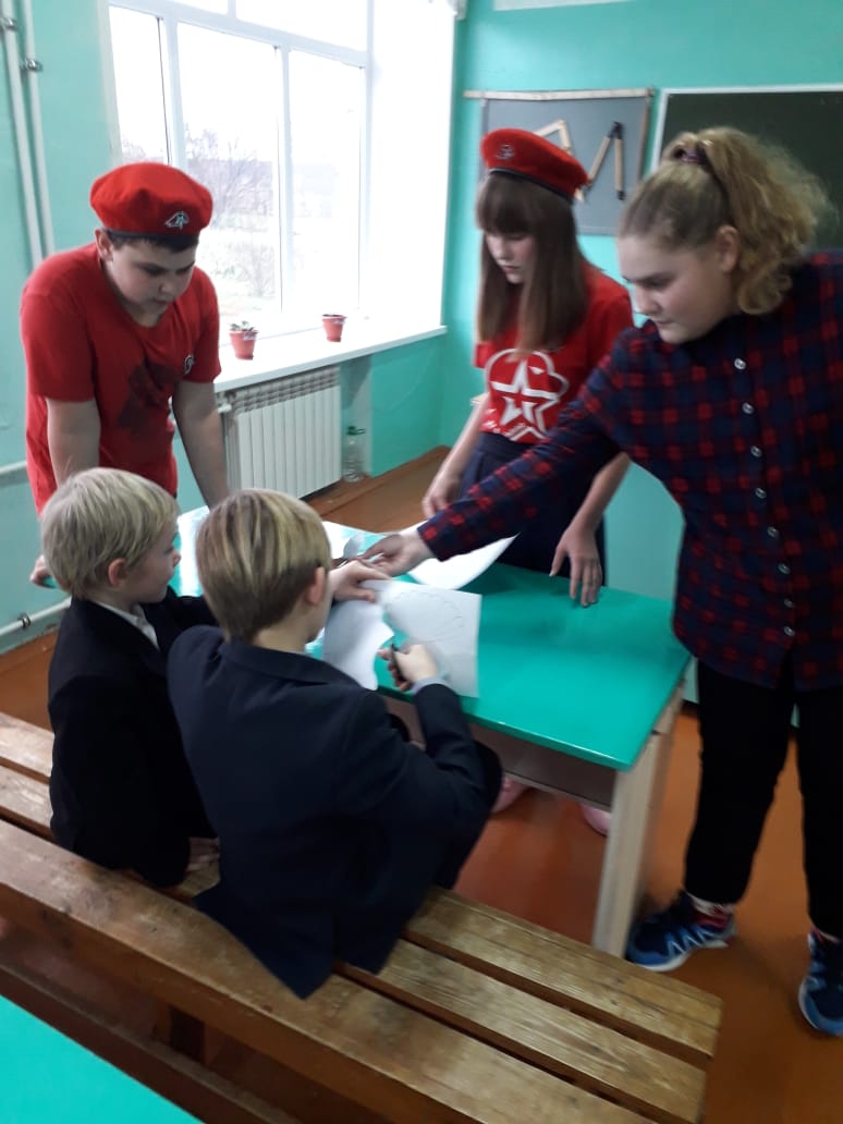 Отряд "Сокол" Юнармейцы провели акцию "Голубь мира" с учащимися начальных классов. Ребята сделали бумажных голубей и прикрепили их на карту мира./upload/storage/org1866/files/IMG-20191114-WA0013.jpg