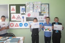В рамках месячника "Внимание - дети!" в начальных классах оформлена выставка рисунков «Опасности на дороге»