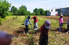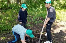 Вместе с вожатыми, активистами движения первых вышли на посадку сада памяти в честь участников ВОВ.