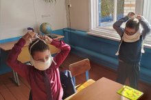 В практическую часть была включена тренировка на надевание ватно-марлевых повязок.
