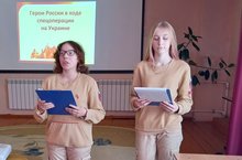Балалар безнең районда яшәгән Тарасов Е.А. солдат турында бик мөһим нәрсәләр белделәр. Шулай ук чарада махсус хәрби операциягә багышланган шигырьләр дә яңгырады. Укучылар "Z операциясе" геройларының батырлыгы турында сөйләүче онлайн платформа һәм РФ Кораллы Көчләр министрлыгы ярдәмендә басылып чыккан шигырьләр җыентыгы белән таныштылар, ул Украинада нацизм белән көрәшүче Россия сугышчыларының батырлыгына багышланган иде