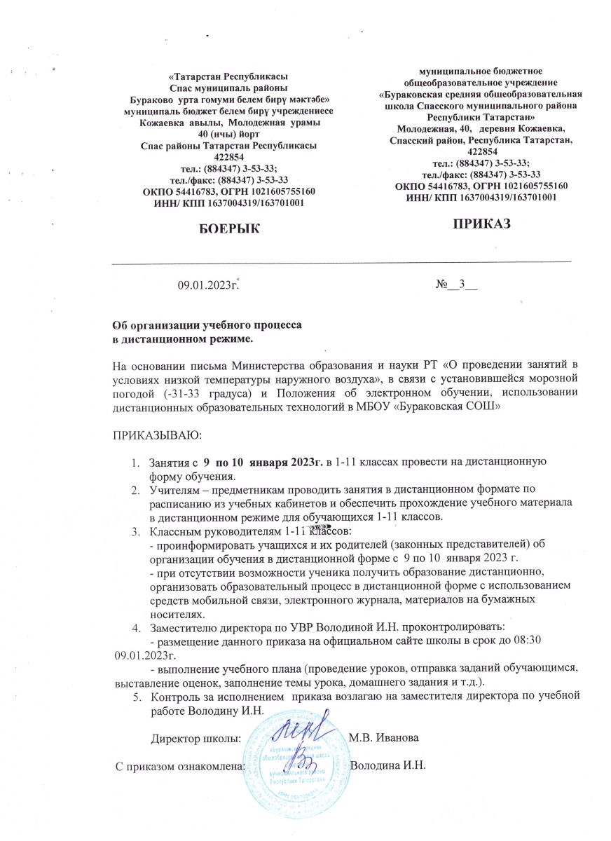 Приказ №3 от 09.01.2023 "Об организации учебного процесса в дистанционном режиме"