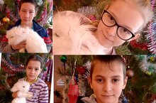 Мы встречаем новый год — Кролика, и он пришел в гости к детям в пришкольный лагерь. Он хороший, как пушок, Лапочки и хвостик. Будем ёлку украшать Сладенькой морковкой, Чтобы кролика встречать, Вместе прыгать ловко! Новый год наступит скоро, Он войдёт к нам в каждый дом. Будем вместе веселиться, Счастье всем подарит он. Кролик белый и пушистый, С Новым годом к нам пришел. Все печали и тревоги, Он с собою заберёт. Новый год стучится в дверь.