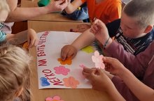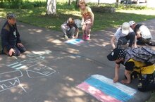 Балаларны яклау көнендә "Исәнме, дөнья! Исәнме, дус". Ике "Яфраклар" һәм "Чәчәкләр" отрядлары балалары күңелле уен эстафетасында катнаштылар. Нәтиҗәдә, һәрвакыттагыча дуслык җиңде. Балалар күтәренке кәеф һәм оптимизм алдылар. Асфальтта традицион рәсемнәр дә бу якты һәм бай мәктәп яны көнен төгәлләделәр. Барыгызга да күңелле каникуллар!!! Ура!!