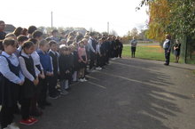 В рамках месячника гражданской обороны в школе прошла тренировка . Эвакуация школьников, педагогов, технического персонала в случае возникновения пожара.