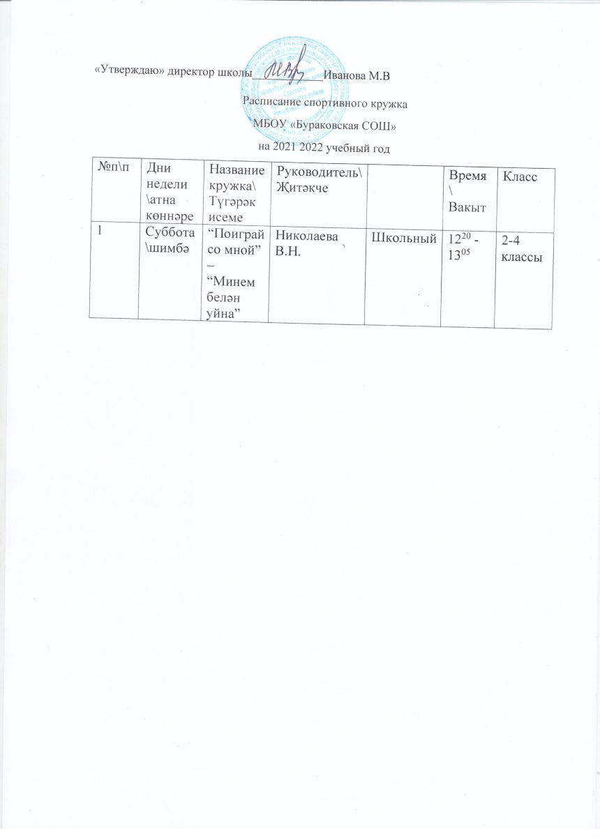 | Короткое название: | МБОУ "Бураковская СОШ" |