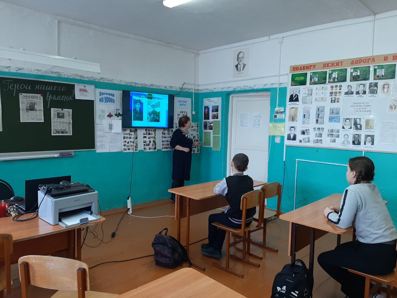 В заключении Надежда Геннадьевна провела обзор газет "Служу Отечеству". Мероприятие сопровождалось презентацией о подвигах Героев России нашего времени.