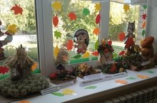 Выставка проходила в течение недели. В своих работах ребята использовали разные природные материалы – шишки, листья, цветы, веточки, мох, овощи, фрукты и т.д. На выставке были представлены лесные композиции, осенние сказки, игровые ситуации, панно, игрушки и многое другое.