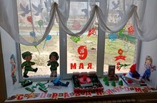 Воспитатель группы, Бухлаева Н.Ю., совместно с родителями и детьми подготовили вот такое оформление к 9 Мая.