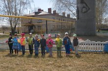 Дети пели патриотические песни, рассказывали стихи на военную тематику, возложили живые цветы к памятнику.