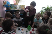 На занятиях по опытно-экспериментированному исследованию дети с воспитателем Бухлаевой Н.Ю. продолжали знакомиться со свойствами и качеством воды. Много нового и интересного узнали дети во время проведения опыта.