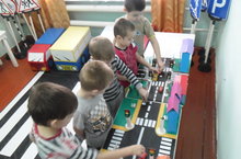 Воспитатель Бухлаева Н.Ю. предлагает детям при игре " в машинки" использовать макет дороги. Его применение полезно и в самостоятельной деятельности детей, и в сюжетно-ролевых играх, где дети моделируют ситуацию на дороге. В игровой форме дети изучают все опасные участки дороги, находят безопасные маршруты до детского сада. Макет можно использовать для развития мелкой моторики, зрительного восприятия, социально-бытовой ориентировки, ориентировки в пространстве.