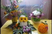 На День города мы представили икебаны из живых цветов. Над ними трудилась творческая группа в составе Костюниной Л.И.,Лукашиной Н.А., Романовой Н.А.,Максимовой М.А., Дербеневой Н.А.,Выжловой Н.Н.
