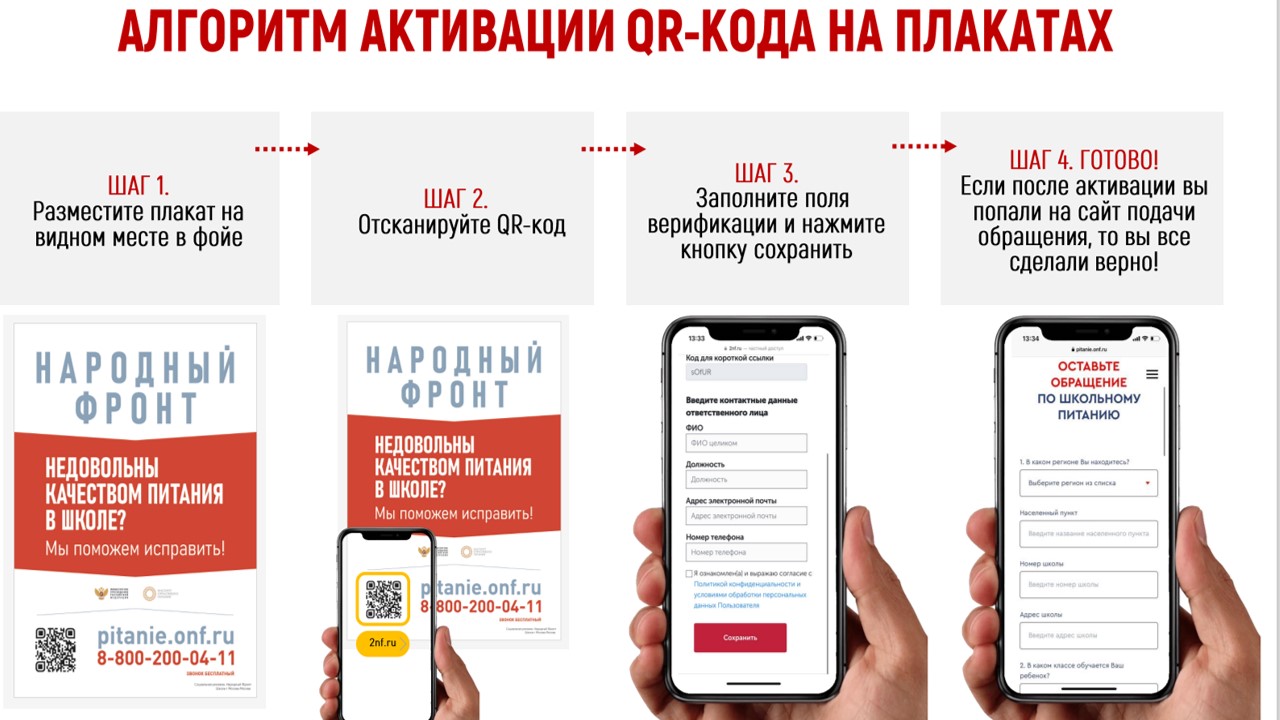 Уважаемые родители, вы можете высказать свое мнение по качеству школьного питания, активировав код с плаката