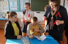 Акция, приуроченная ко Всемирному дню борьбы со СПИДом, прошла сегодня в нашей школе,завершением которой стало вручение буклета о профилактике СПИДа и символики Дня борьбы со СПИДом- "Красная ленточка"