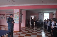 В рамках месячника безопасности детей в нашей школе была проведена эвакуация, на которой присутствовал сотрудник МЧС пожарной части Колесов Андрей Иванович.Он провел внеплановый инструктаж с обучающимися о мерах пожароопасного поведения.