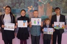 Призеры школьного конкурса рисунков "Нет коррупции" Филиппова Вероника,Репьев Михаил,Барышев Владислав.Зарипов Данис,Филиппова Саша.