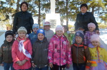 В канун праздника Дня Победы ребята старшей группы возложили цветы к памятнику погибшим войнам. Девятого мая наш народ отмечает праздник- День Победы. В этот день много лет назад наш народ победил очень сильного врага- фашистскую Германию.Это была очень страшная война. В работе с детьми по знакомству с родным селом, его историей необходимо использовать такую форму работы, как экскурсии, так как узнать и полюбить село, его традиции, его историю в годы Великой Отечественной войны только по иллюстрациям невозможно.