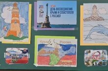 В рамках мероприятий, посвященных Дню воссоединения Республики Крым и города- героя Севастополя с Российской Федерацией, в нашей школе была организована выставка детских рисунков. Учащиеся начальных классов представили свои работы. Экспозиция включает в себя яркие пейзажи Крыма, символические изображения дружбы народов и мирного будущего. 19.03.2026