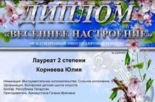 В начале апреля учащиеся музыкального отделения по классу фортепиано участвовали в Международном многожанровом конкурсе "Весеннее настроение", номинация "Инструментальное исполнительство".
